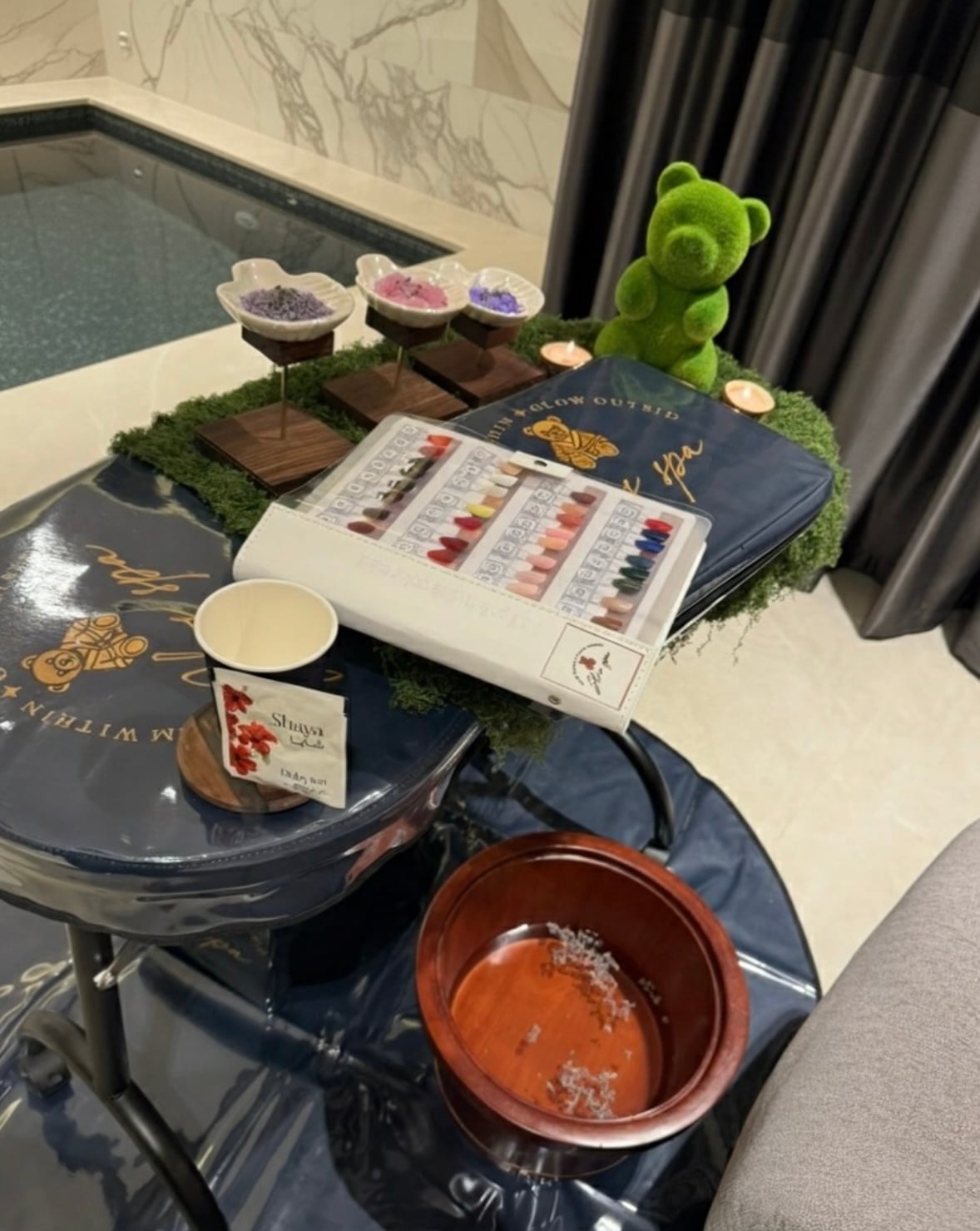 تتوج الجلسة بتدليك استرخائي عميق باستخدام كريم غني ممزوج بلمسة من حبيبات اللافندر العطري، لتنعمي بأيدٍ وأقدام ناعمة كالحرير ومظهر صحي متوهّج.